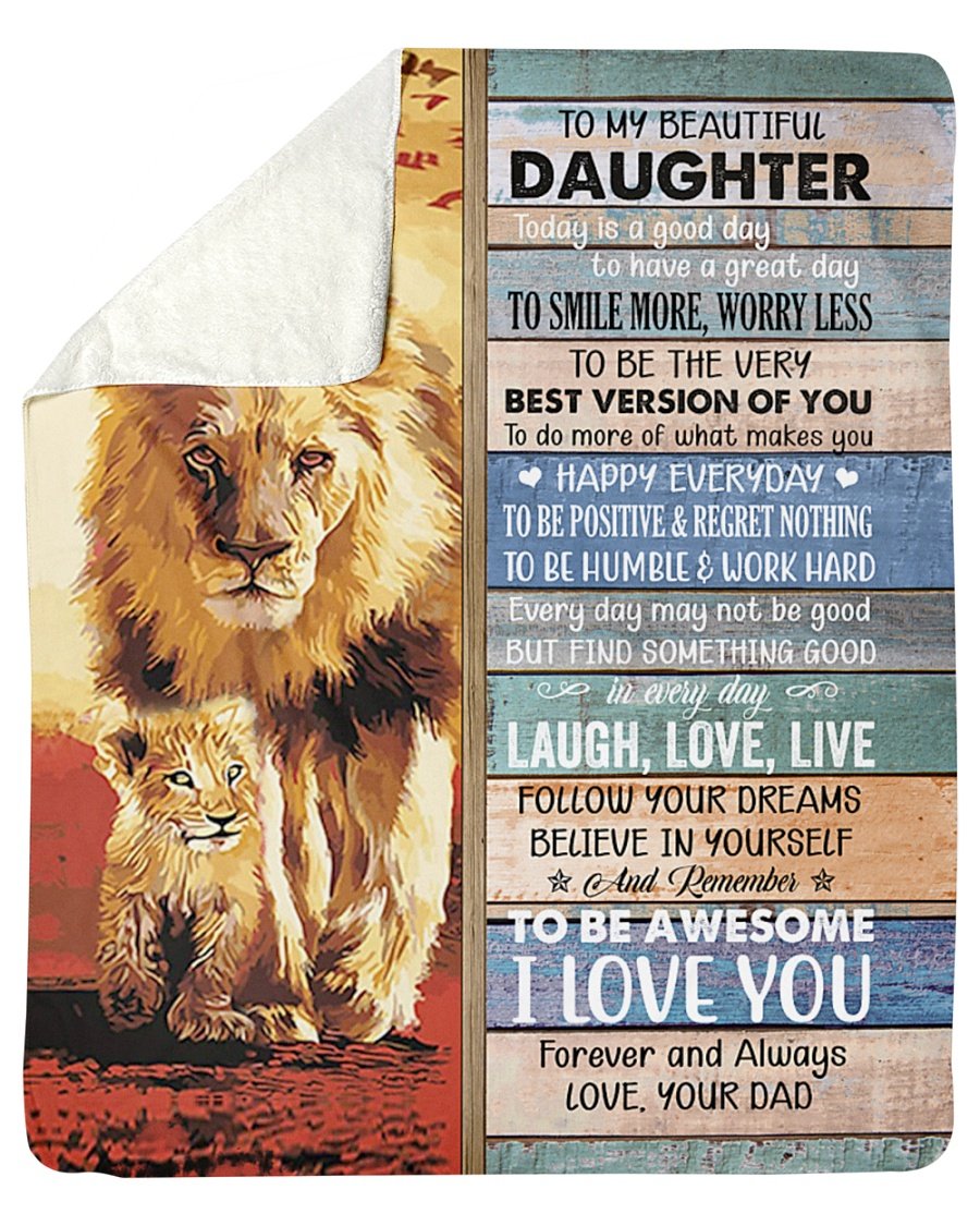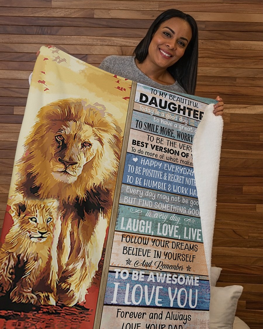 Lion- To Be Awesome I Love U Dad-To-Daughter Fleece Blanket – Quilt Blanket | Gift For Daughter