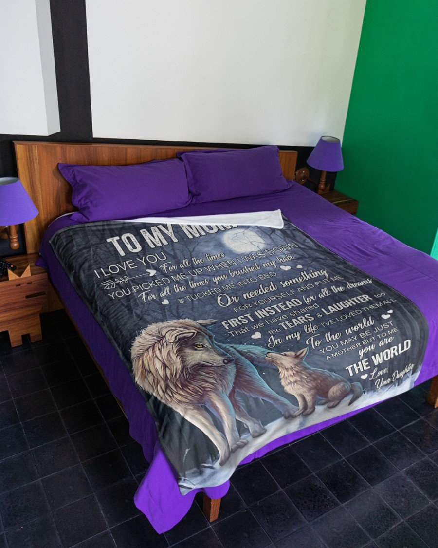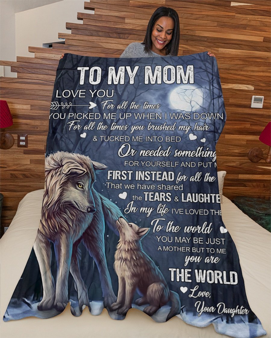 To My Mom From Daughter I Love You Wolf 08 Fleece Blanket – Quilt Blanket, Thank You Gifts For Mother’S Day, Best Mother’S Day Gift Ideas, Home Decor Bedding Couch Sofa Soft And Comfy Cozy